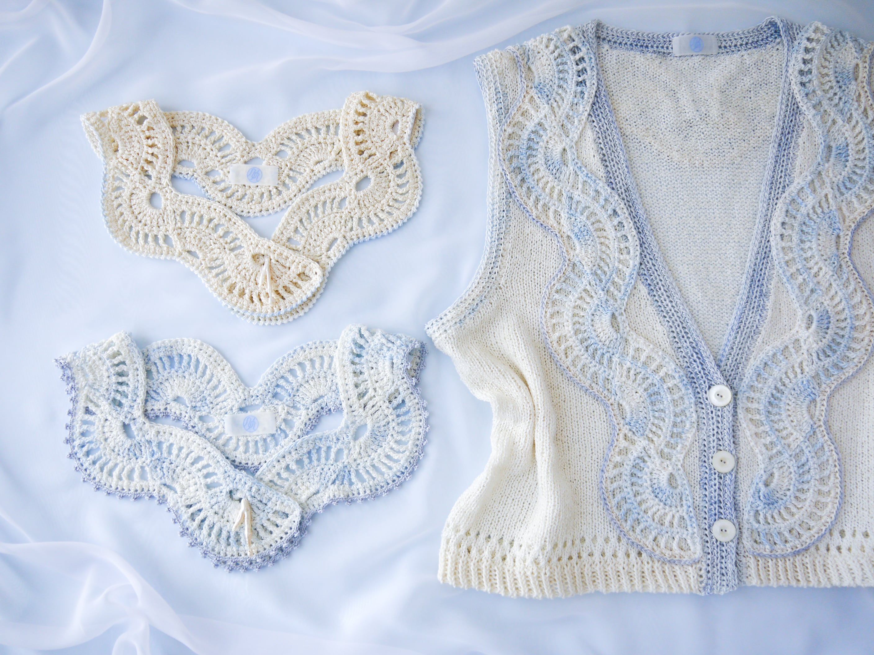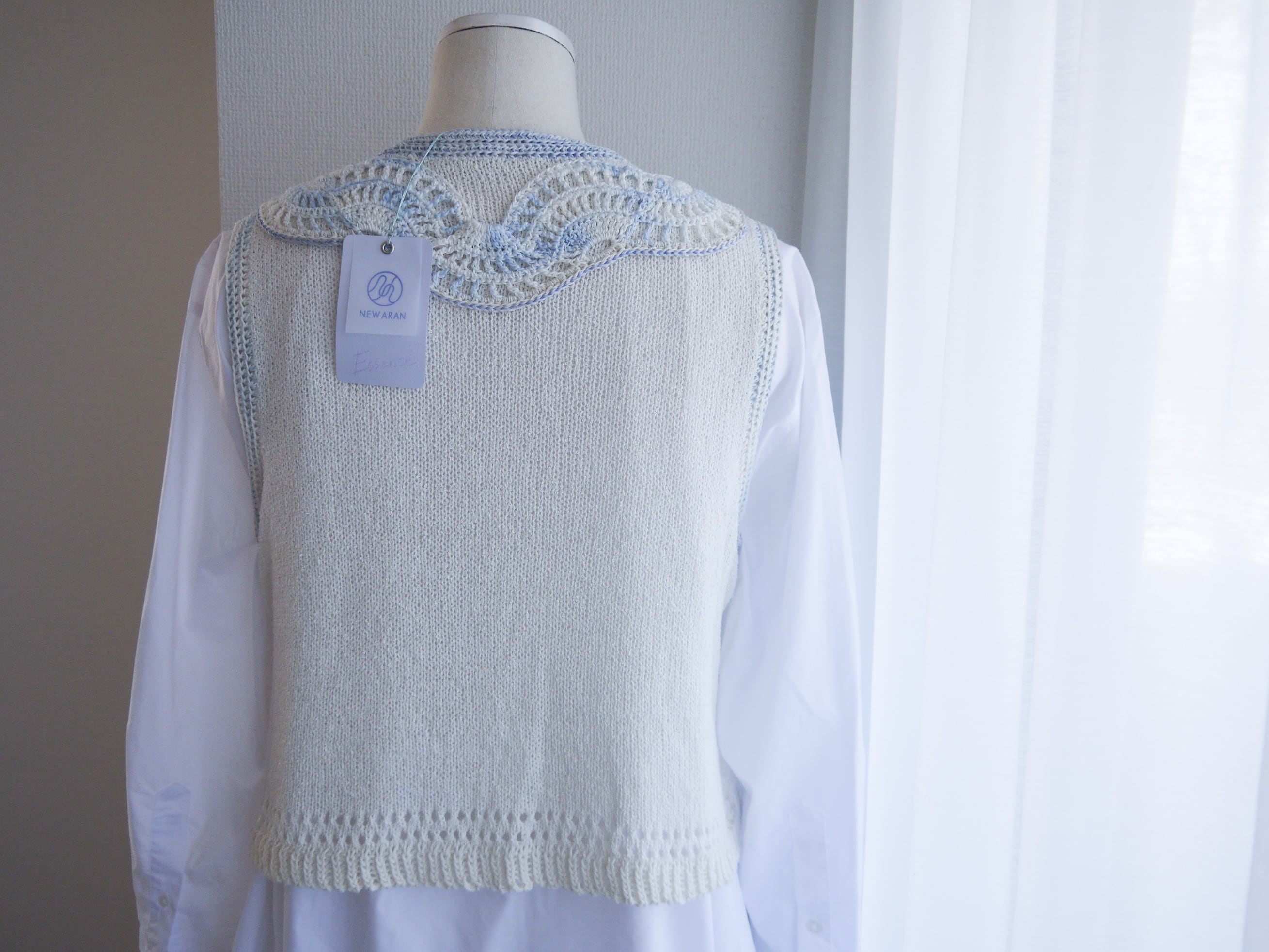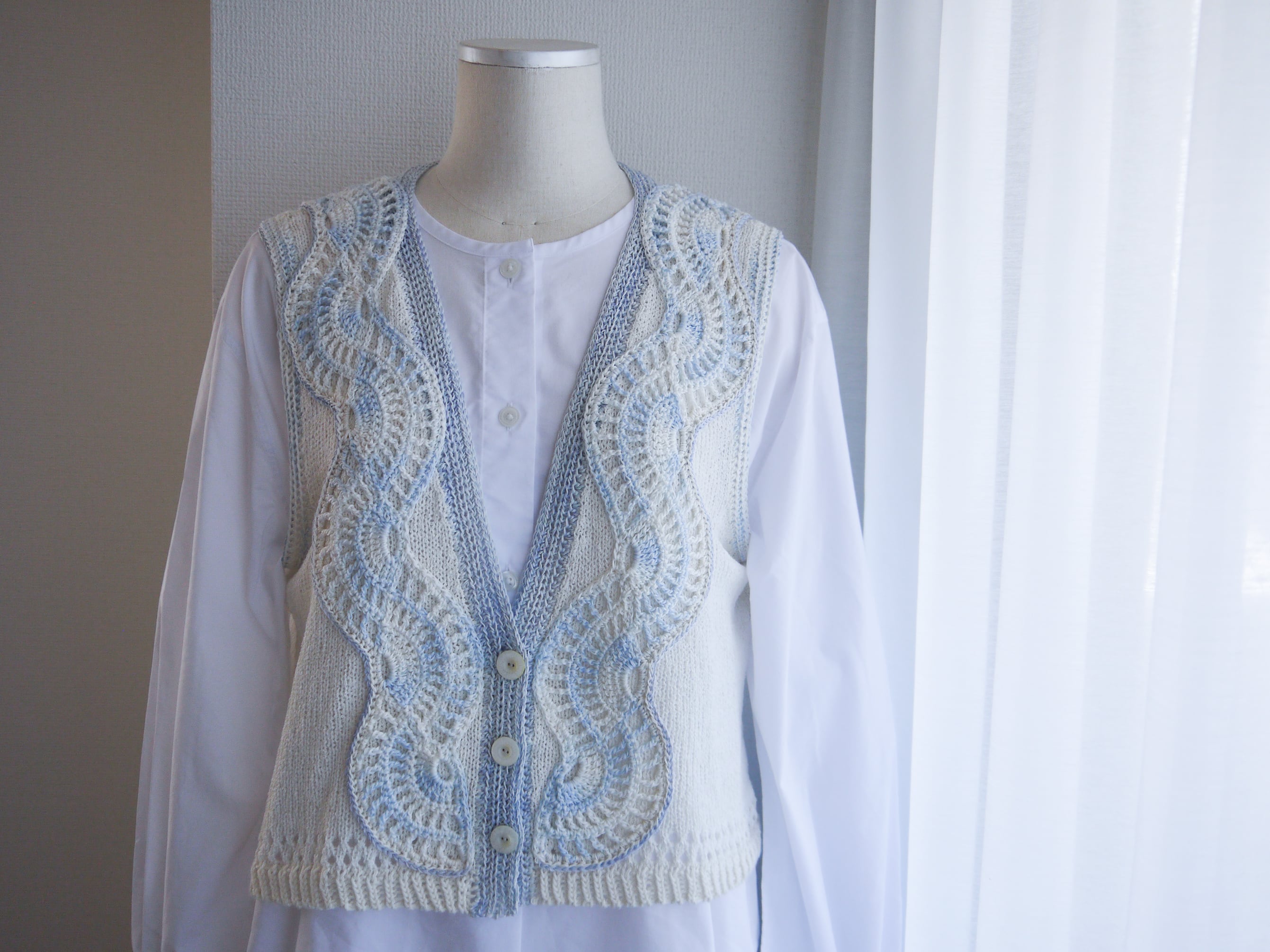 シャツやワンピースにぴったりのベストを編みました。何と言ってもこの大きな、なみなみが特徴です。