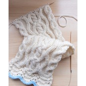 2色の毛糸で編むアラン模様のマフラーのパターンです。